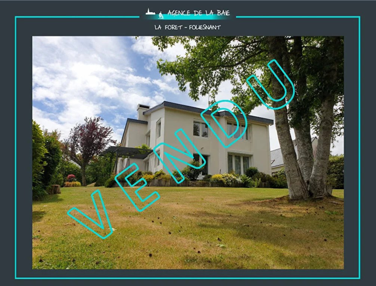 VENDU PAR L'AGENCE DE LA BAIE! Située dans un écrin de verdure, au calme et à seulement 1km du centre de LA FORET FOUESNANT, cette MAISON D'ARCHITECTE vous séduira pas ses volumes et sa luminosité. La pièce à vivre d'une surface totale de 68 m² offre un beau salon avec cheminée et à demi-niveau un ensemble salle à manger et cuisine équipée de très bonne qualité ouvrant sur une terrasse exposée plein sud.. Une grande chambre de plain pied avec sa salle d'eau privative et les WC complètent le rez-de-chaussée. A l'étage, une grande mezzanine dessert 3 belles chambres avec placards, une salle de bains et des WC. Un garage avec coin buanderie et une belle cave ainsi qu'un auvent offrent des possibilités de rangement ou de stationnement. L'ensemble est construit sur terrain joliment planté et arboré de 2000m². A découvrir sans attendre ! Pour tout renseignement complémentaire sur l?achat de cette maison, vous pouvez joindre l'Agence de la Baie à La Forêt-Fouesnant au 02.98.91.58.47 ou vous rendre sur notre site internet.