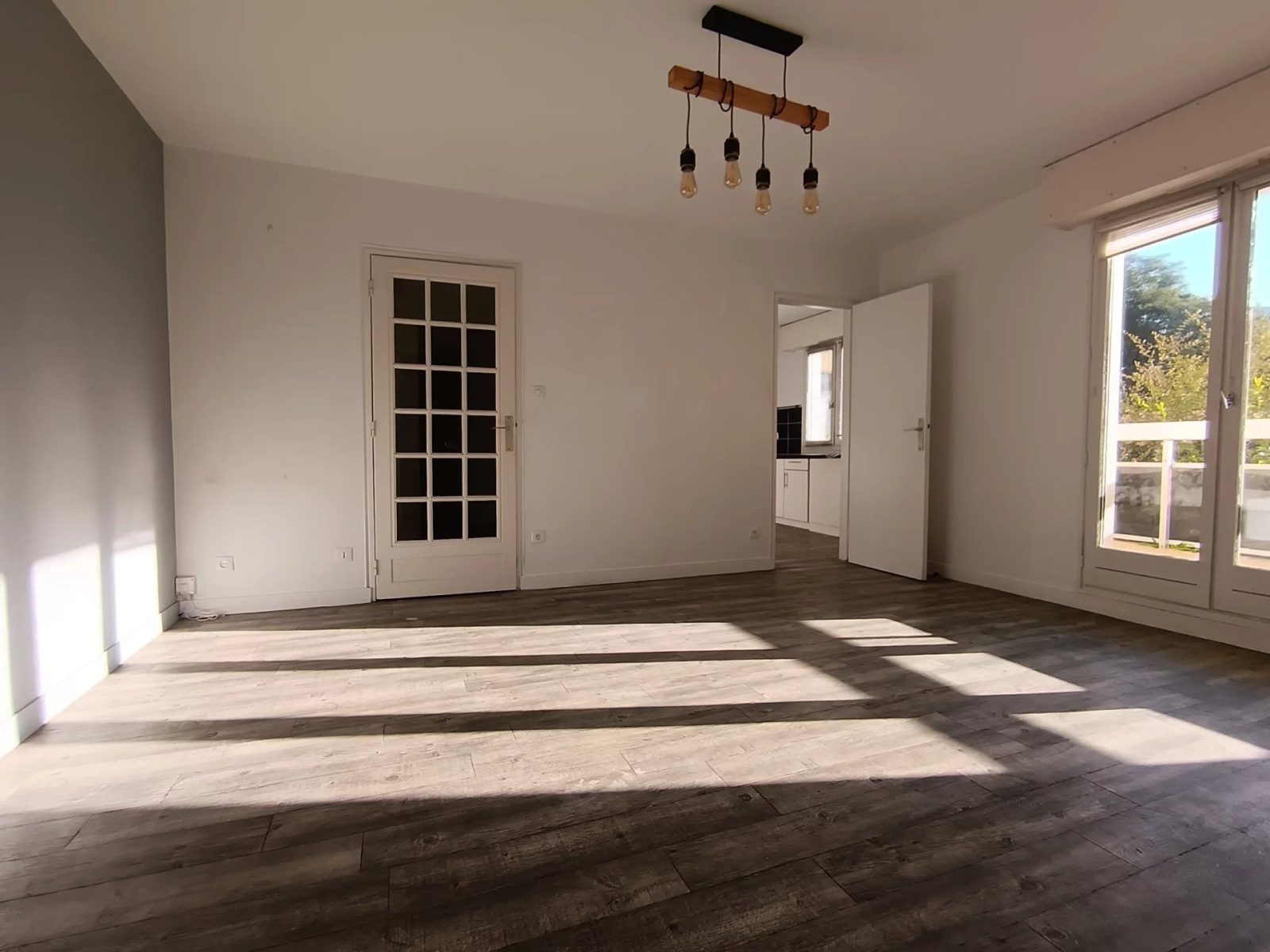 L'entrée dessert une belle cuisine aménagée et équipée, un séjour spacieux, une chambre, une salle d'eau et un WC séparé avec lave-mains.