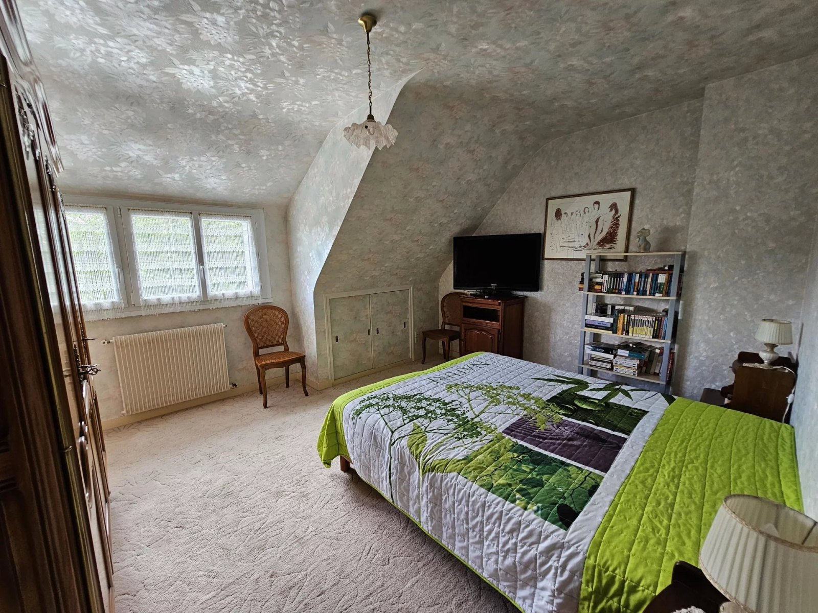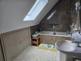A l'étage, le pallier dessert 2 chambres, bureau et salle de bains avec WC.