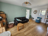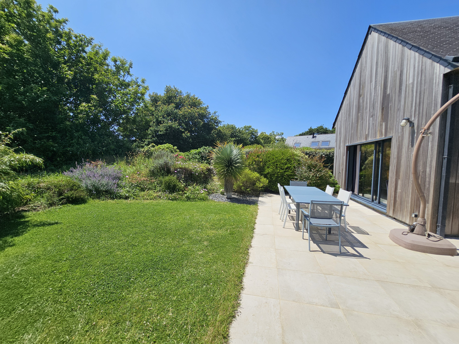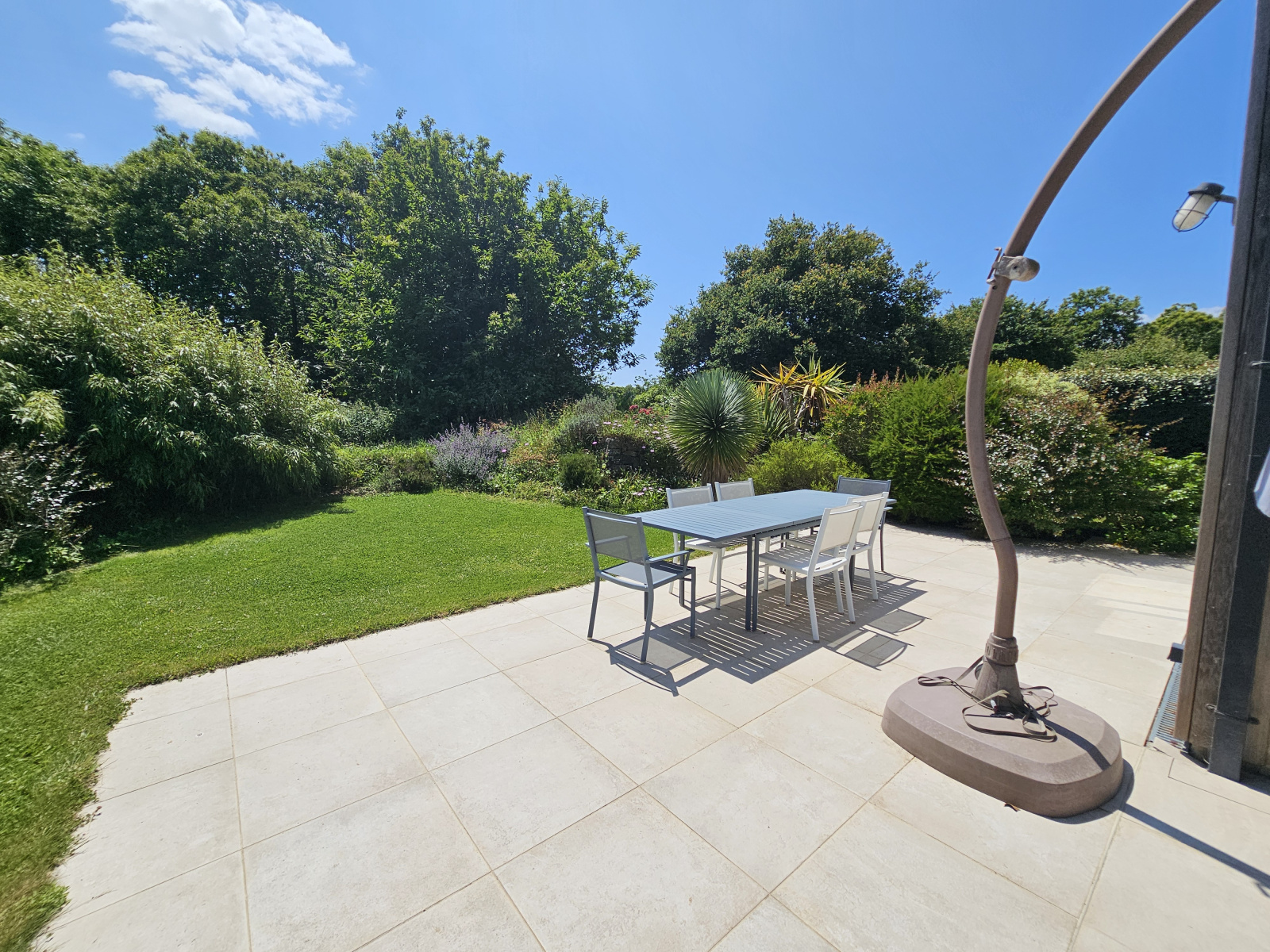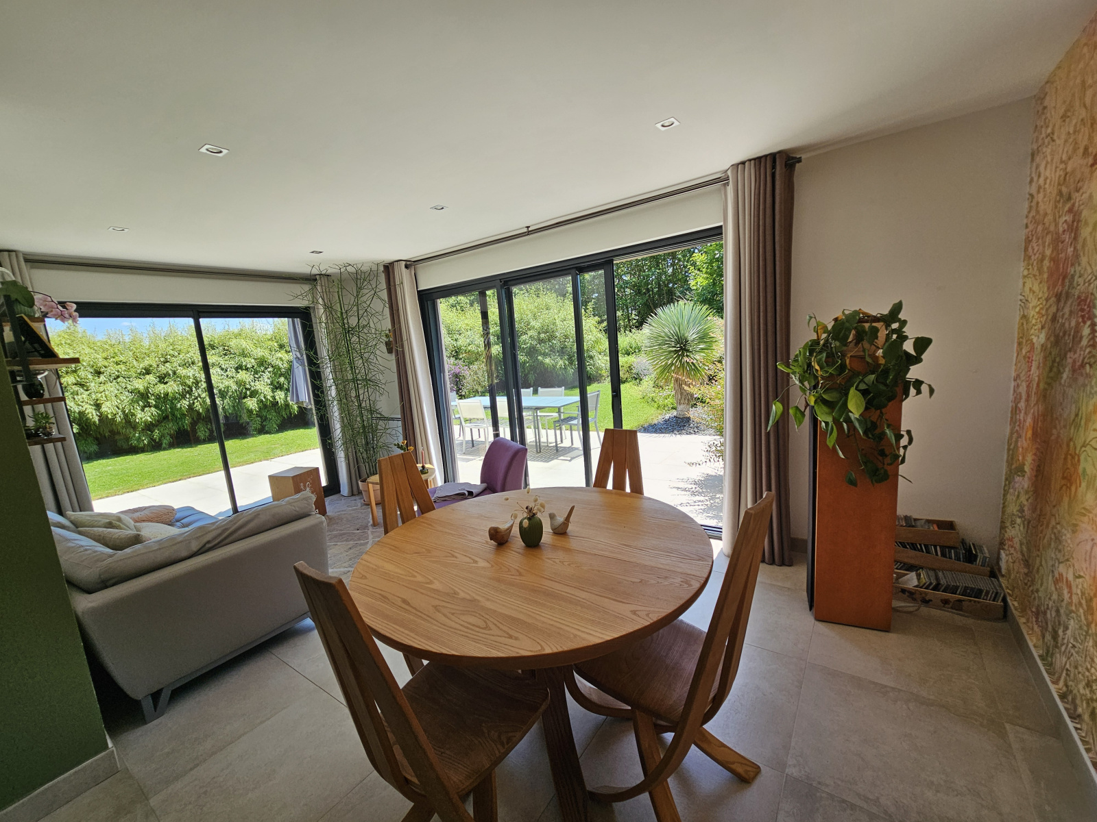 Dans l'extension attenante, un beau séjour exposé sud et ouest, ouvrant sur la terrasse et le jardin.