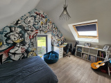 A l'étage : la mezzanine aménagée en espace bureau, 3 chambres une salle d'eau et un WC.
