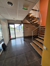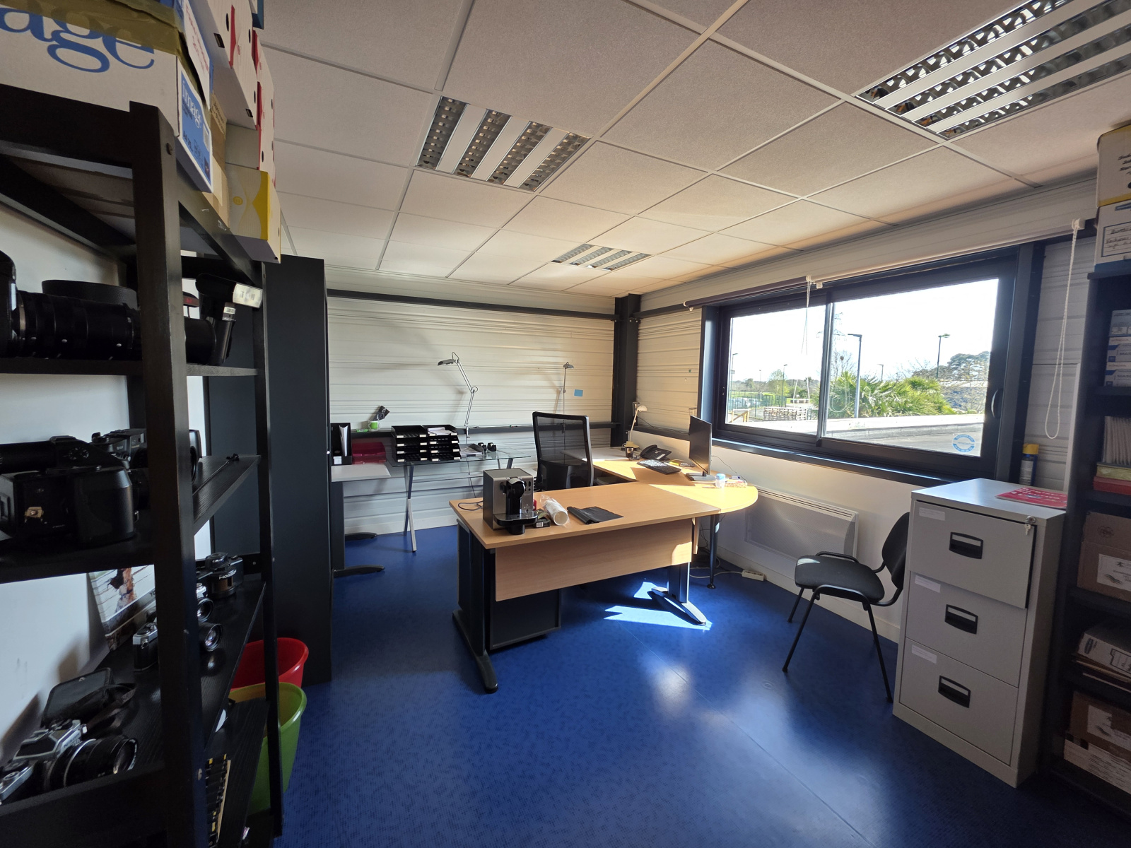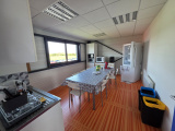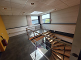 A l'etage (82m² de surface), sur dalle béton, une mezzanine dessert 3 bureaux et un espace cuisine, très lumineux.