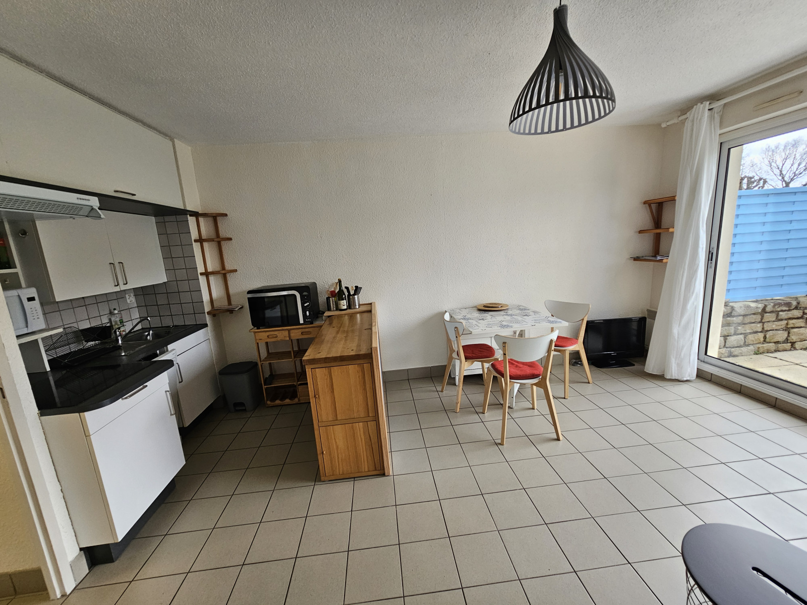 De plain-pied, vous y découvrirez une entrée, un séjour avec cuisine aménagée et équipée donnat accès à la terrasse et au jardinet privatif, une chambre avec placard, une salle d'eau et un WC.