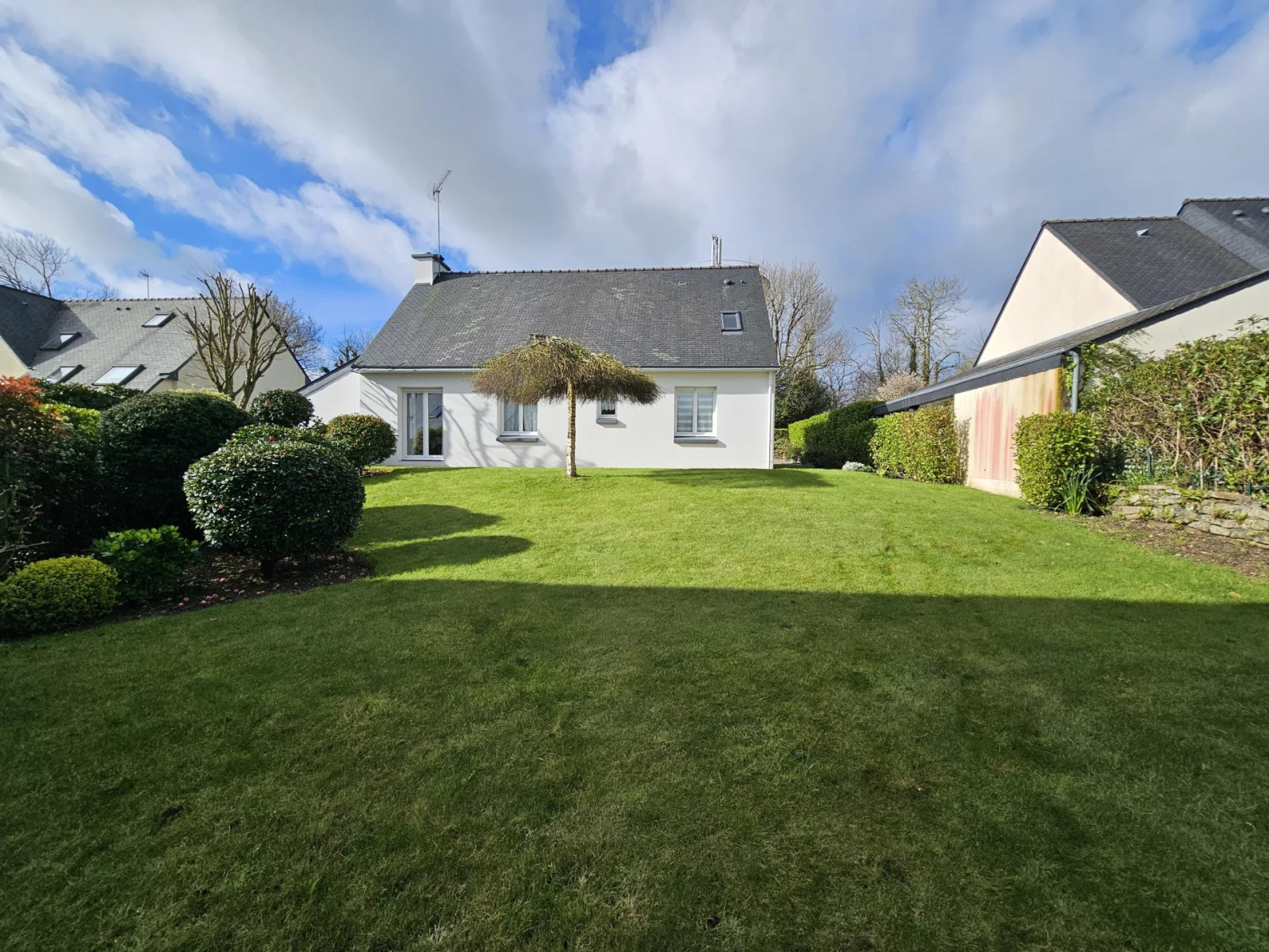 VENDU PAR L'AGENCE DE LA BAIE ! LA FORET FOUESNANT A proximité immédiate du centre bourg et néanmoins située au calme cette charmante maison très bien entretenue propose une vie de plain pied et un étage à finir d'aménager sur un terrain de 600m² environ. Au rez-de-chaussée, vous découvrirez une entrée avec placard, un salon/séjour avec cheminée et sa cuisine aménagée et équipée, deux belles chambres, une salle d'eau et un WC. L'étage, actuellement accessible par le garage, propose une belle surface de 60m² environ à finir d'aménager. Un carport attenant à la maison et un abri de jardin, complètent l'ensemble. Pour tout renseignement sur l'achat de cette maison, vous pouvez joindre l'Agence de la Baie à La Forêt-Fouesnant au 02.98.91.58.47 ou vous rendre sur notre site internet. Les informations sur les risques auxquels ce bien est exposé sont disponibles sur le site Géorisques.