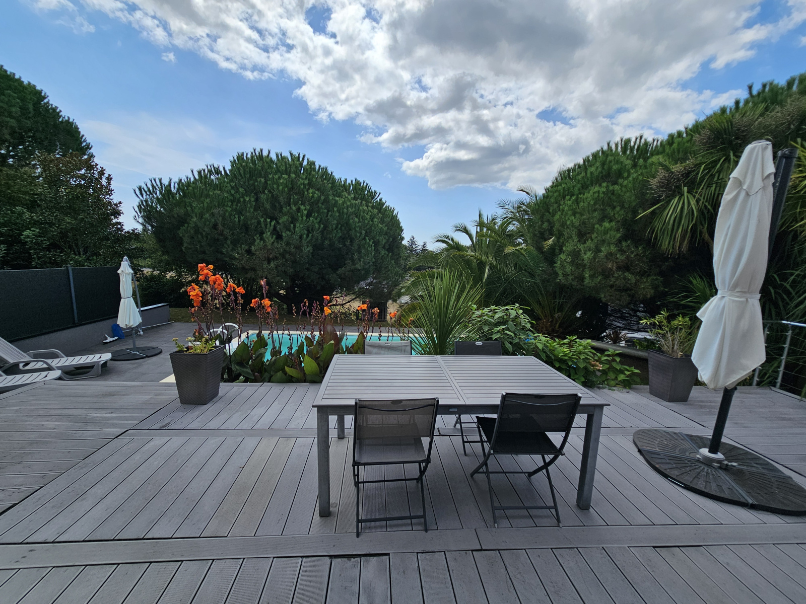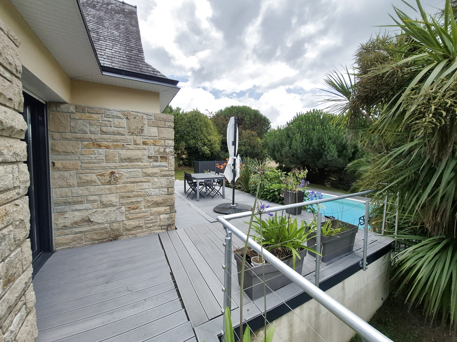 Son extérieur n’est pas en reste : un terrain de plus de 1000 m², soigneusement arboré et sans vis-à-vis, vous garantit calme et intimité. La piscine et la terrasse viennent parfaire cet espace de détente.