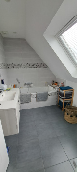 A l'étage, le pallier dessert 3 chambres, une salle de bains et des WC.