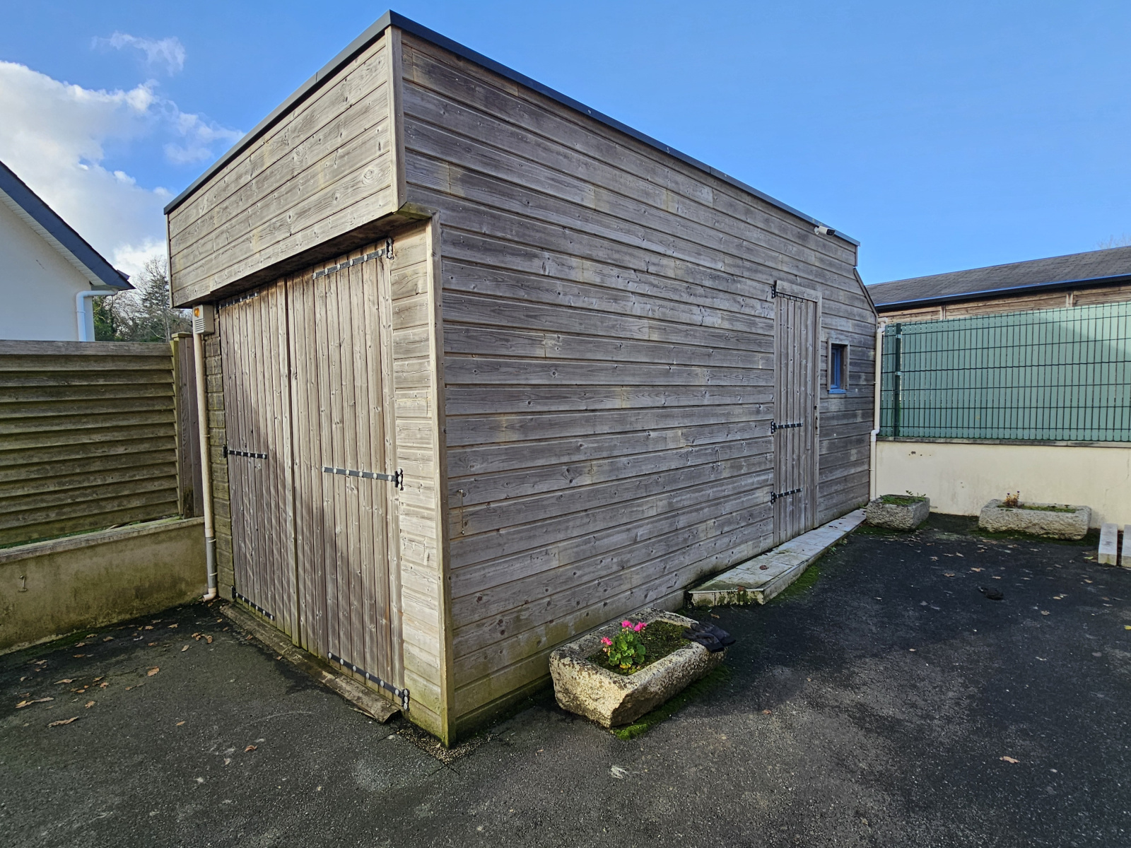 L'ensemble construit sur un terrain clos de 640m² environ aménagé avec un abri de jardin en bois de 20m² et un petit potager.