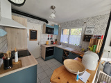Vous y trouverez de plain-pied : une entrée, une pièce à vivre avec son poele à bois et sa cuisine équipée ouverte, une chambre avec salle d'eau privative, des WC et un garage individuel.